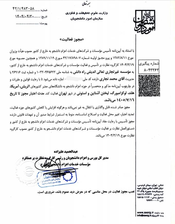 همانطور که در بخش مشاوره و اخذ ویزای تحصیلی اشاره شد، یکی از خدماتی که موسسه به متقاضیان محترم ارائه می نماید رزرو خوابگاه و خانه دانشجویی می باشد. با توجه به شرایط متقاضیان محترم و دانشگاه مورد پذیرش، موسسه برای متقاضیان مبادرت به رزرو خوابگاهی می نماید که مورد تایید سفارت و دانشگاه کشور […]